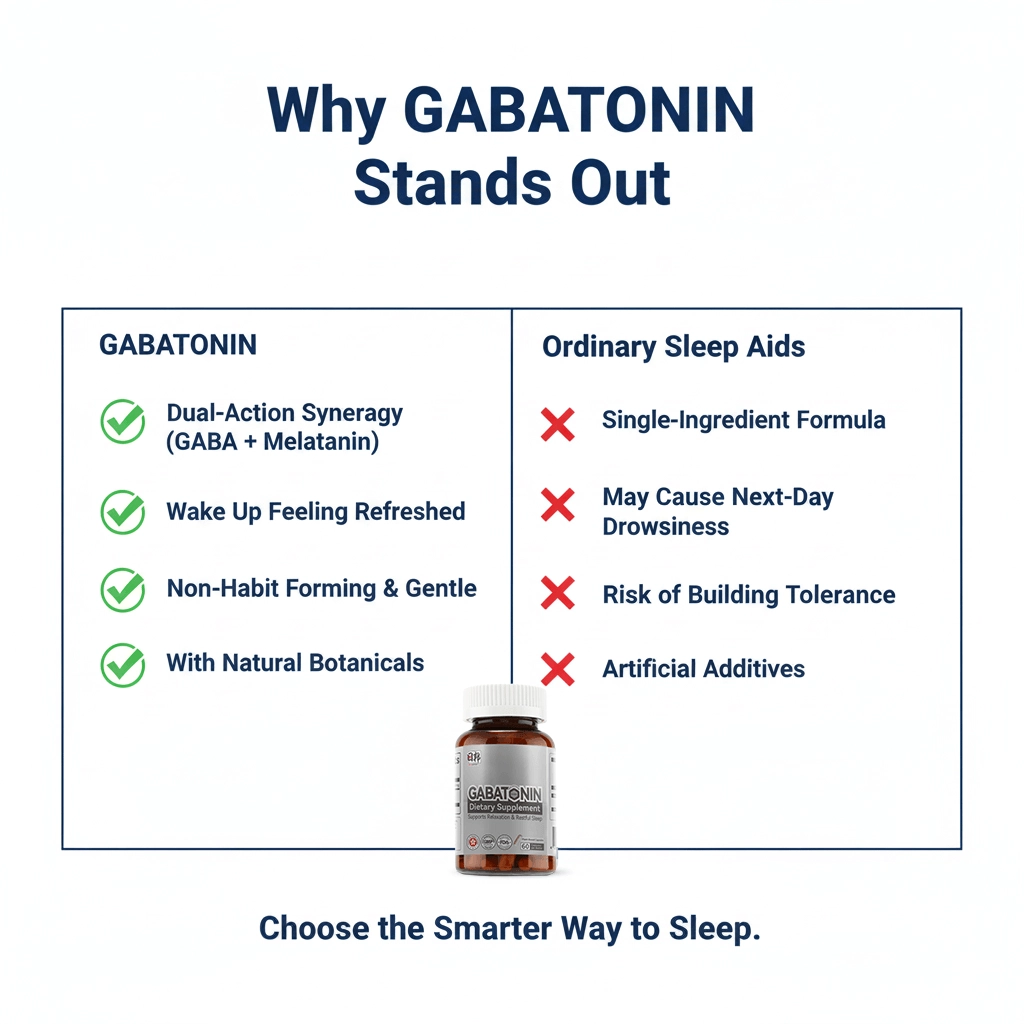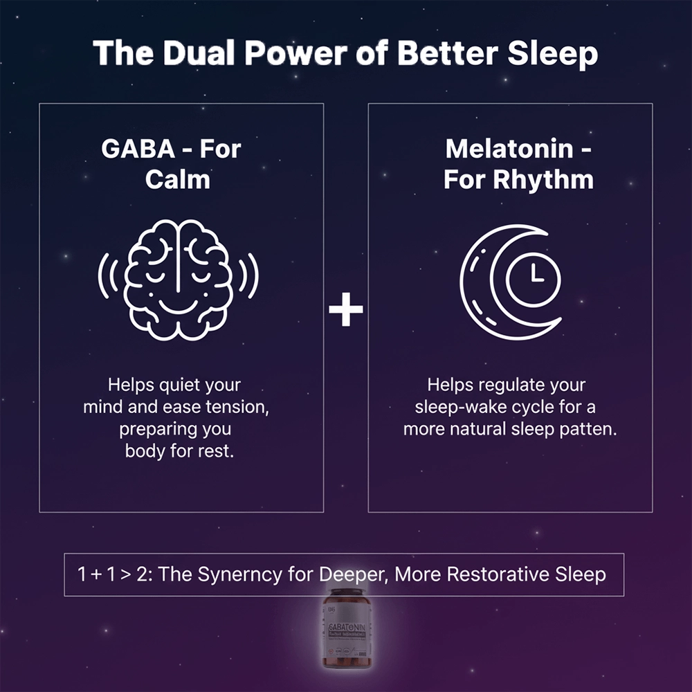 GABATONIN: Two natural compounds for holistic mental and physical sleep support, unlike single-ingredient aids.